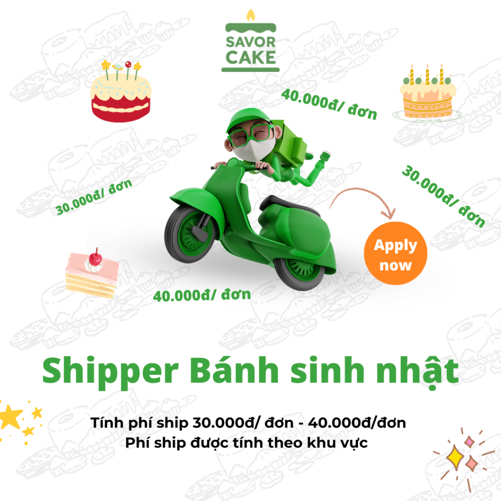– Tiếp nhận bánh sinh nhật, đơn socola từ Bếp của SAVOR CAKE -> Vận chuyển đến địa chỉ của Khách hàng theo yêu cầu.